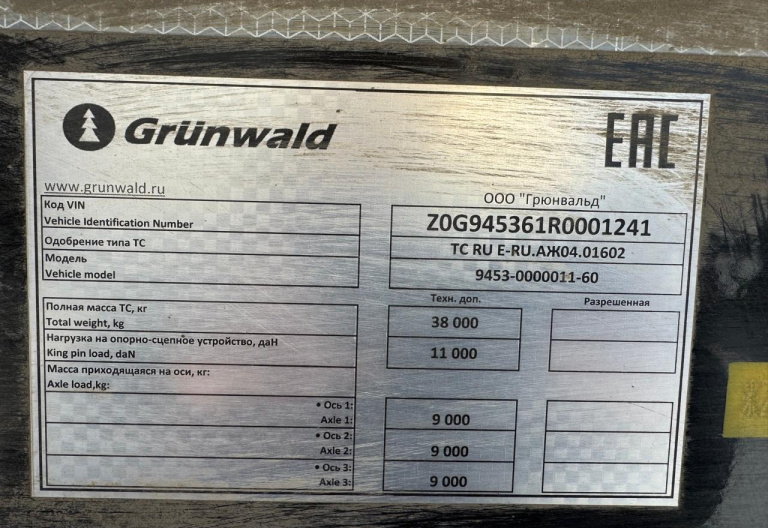 Grunwald 9453 Полуприцеп бортовой (евроборт) 9453-0000010-10 (Шторный)
